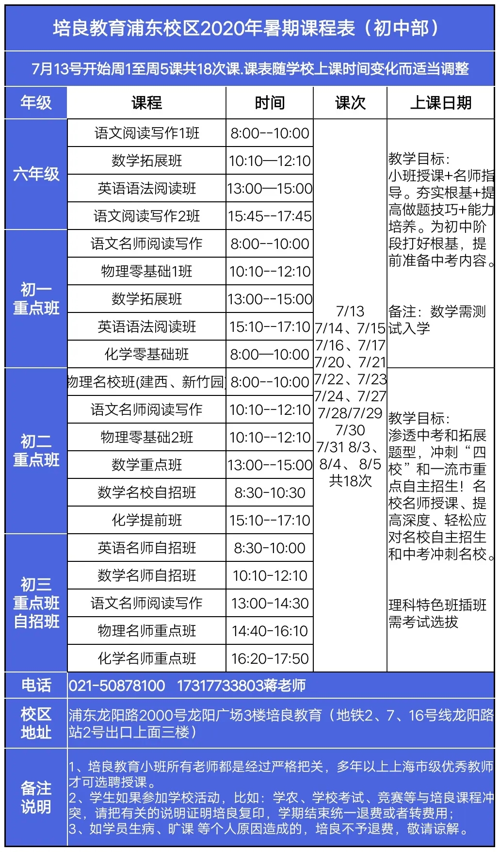 培良教育2020年暑期課程