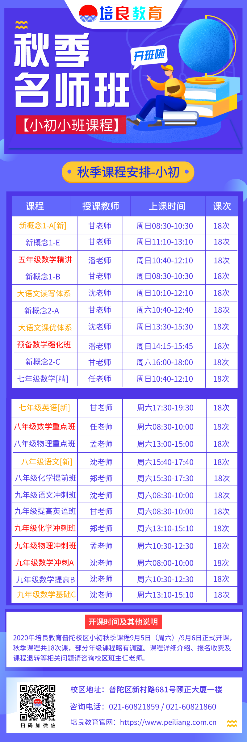 【課程搶報】普陀校區秋季小初名師班!