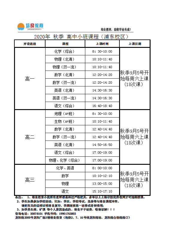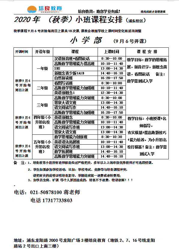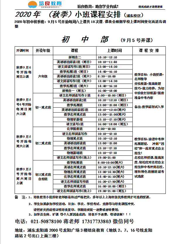 【倒計時】浦東校區秋季小初高名師班!