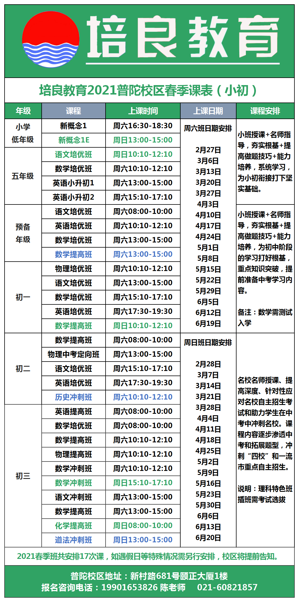 【2021春季班】普陀校區小初名師班